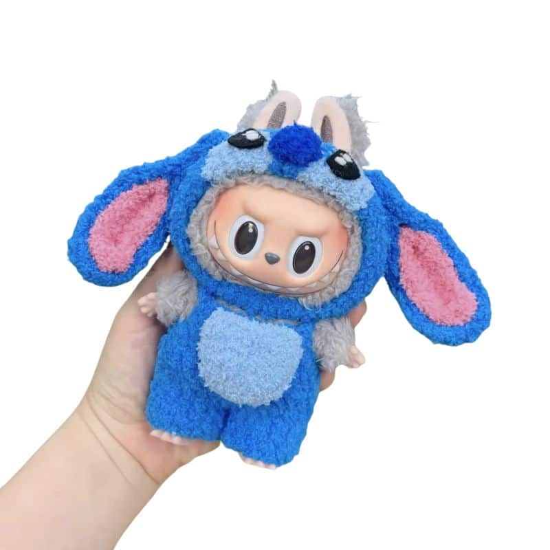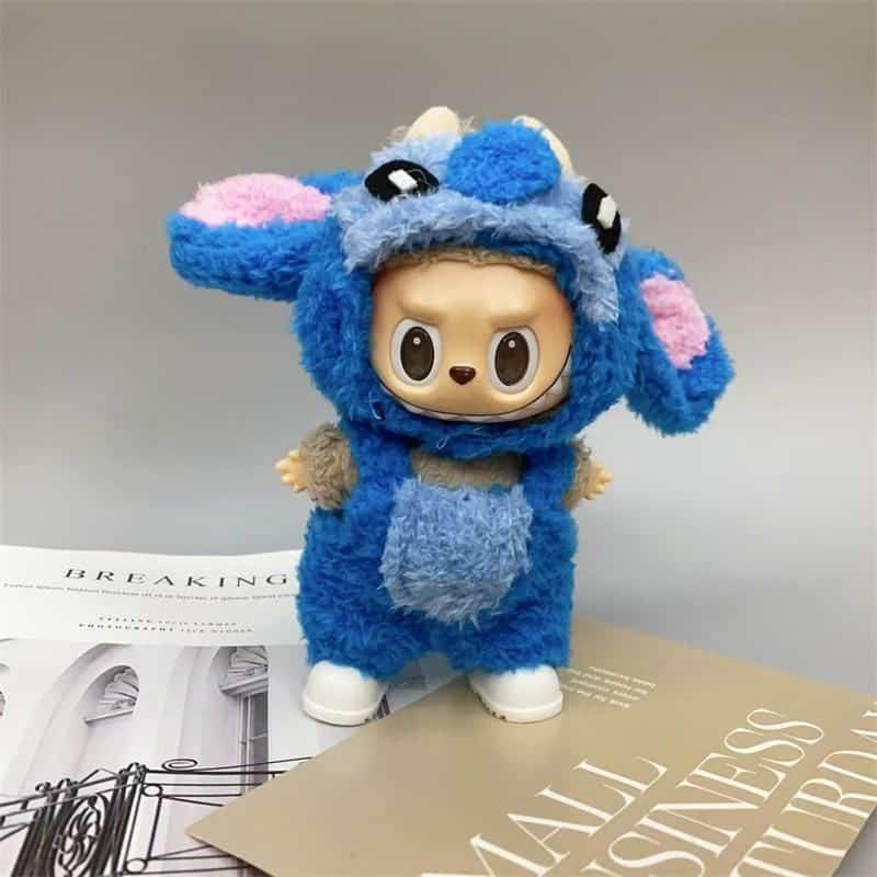 Ce ravissant costume Stitch pour Labubu habille avec douceur votre figurine de 17 cm préférée. Sa confection artisanale et ses finitions délicates créent un univers enchanté autour de votre collection. Cette tenue transforme votre Labubu en compagnon attendrissant aux teintes bleues, parfait pour égayer une chambre d’enfant ou créer des souvenirs photographiques. Réalisé dans une matière tendre et durable, il épouse harmonieusement les formes de votre figurine sans l’endommager.