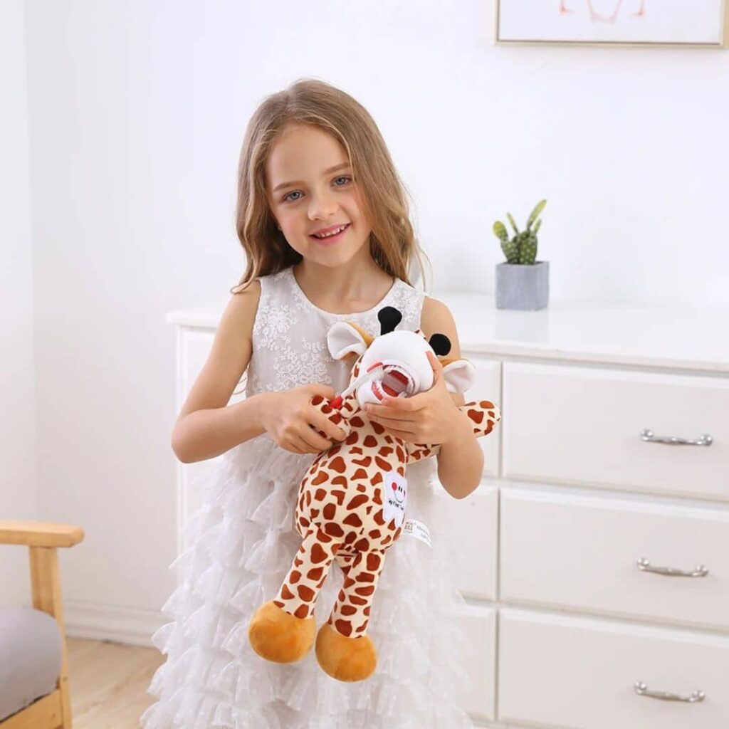 Cette adorable girafe en peluche transforme l’apprentissage de l’hygiène dentaire en moment de tendresse. Avec ses dents à brosser douces et ludiques, elle accompagne votre enfant dans la découverte des bons gestes quotidiens tout en restant son compagnon câlin préféré.