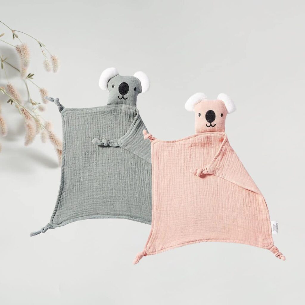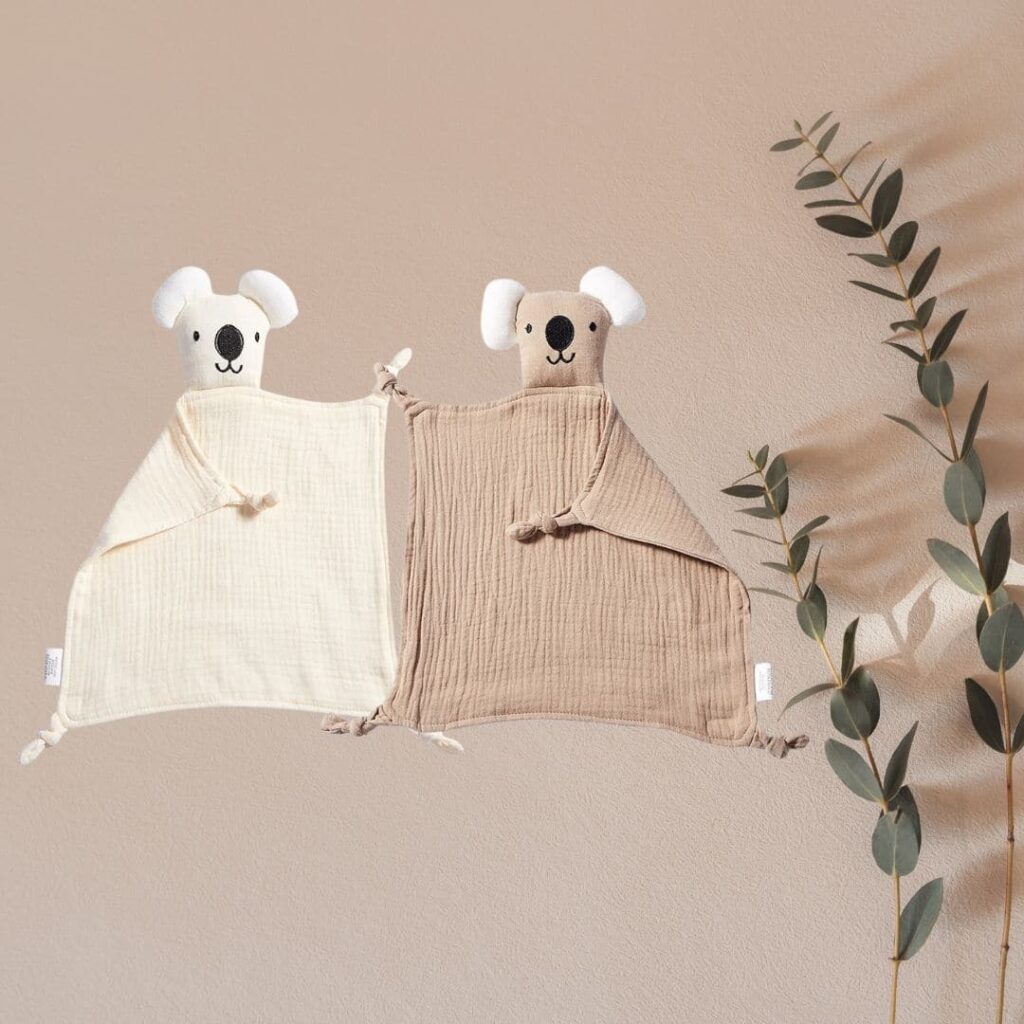 Ce tendre koala aux grands yeux doux s’accompagne d’un mouchoir en coton moelleux pour créer un ami câlin incomparable. Sa texture délicate et sa taille de 28 cm en font le confident idéal pour accompagner les rêves et apaiser les chagrins des petits.