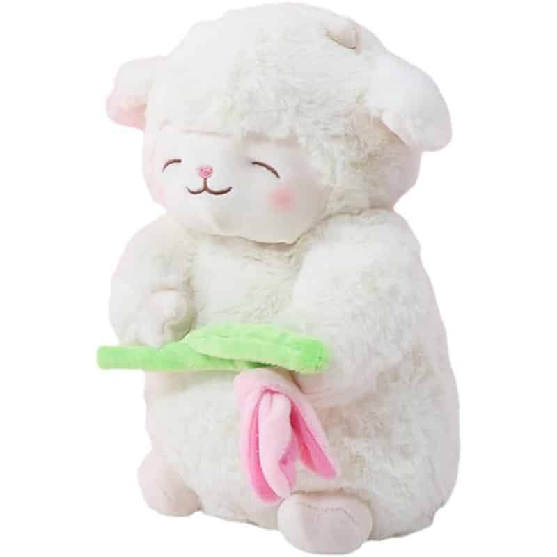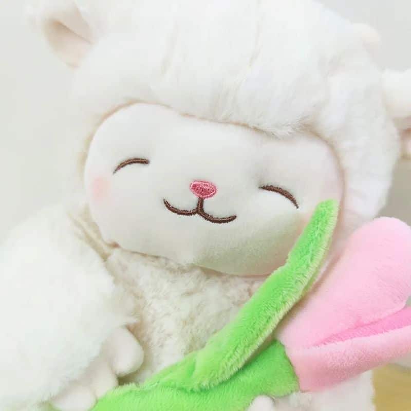 La délicate fleur rose décorative ajoute une touche de fantaisie qui éveille l’imagination des enfants. Ce détail raffiné transforme ce mouton en un personnage unique et attachant.