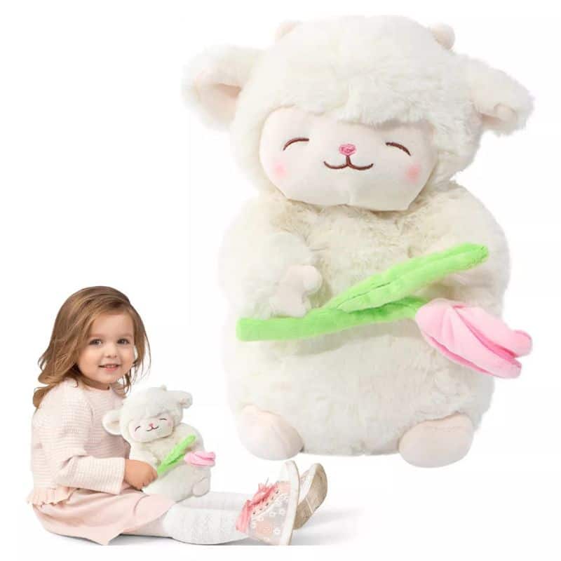 Ce tendre mouton en peluche avec fleur devient instantanément le confident préféré des tout-petits. Sa fourrure incroyablement douce et sa jolie fleur rose en font un ami rassurant de 27 cm, parfait pour accompagner les rêves et consoler les chagrins.