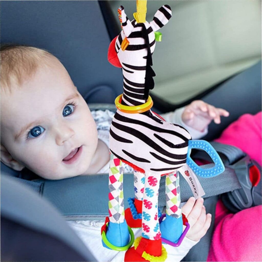 Les petites mains adorent explorer ses rayures douces tandis que sa musique délicate crée une atmosphère propice au repos.