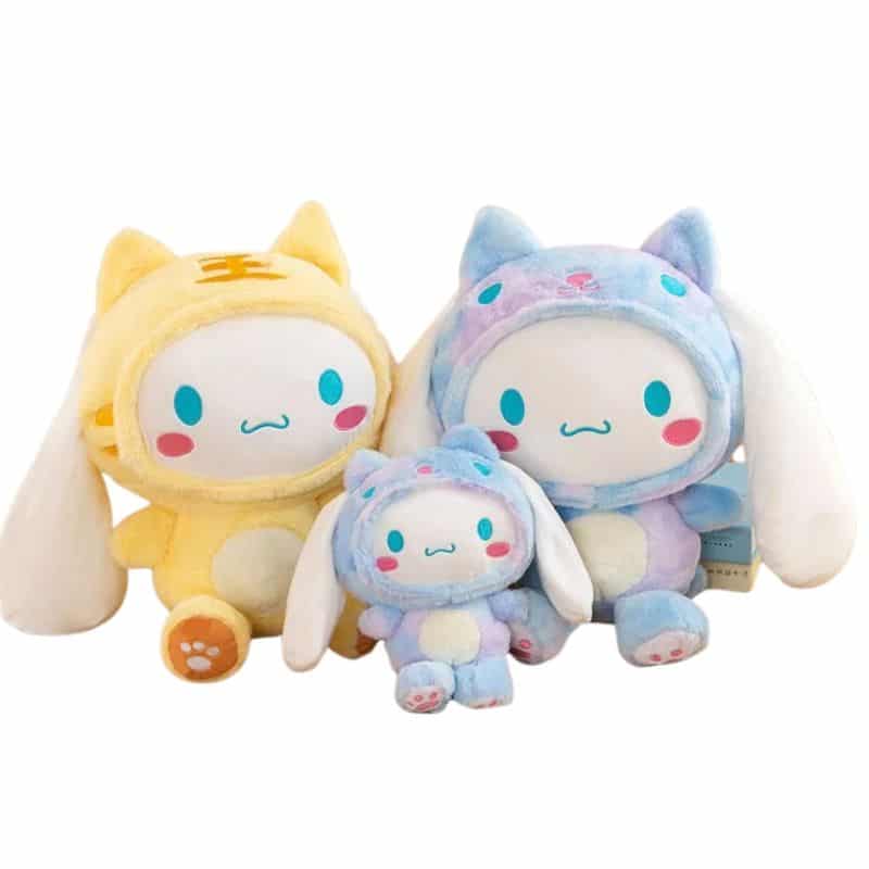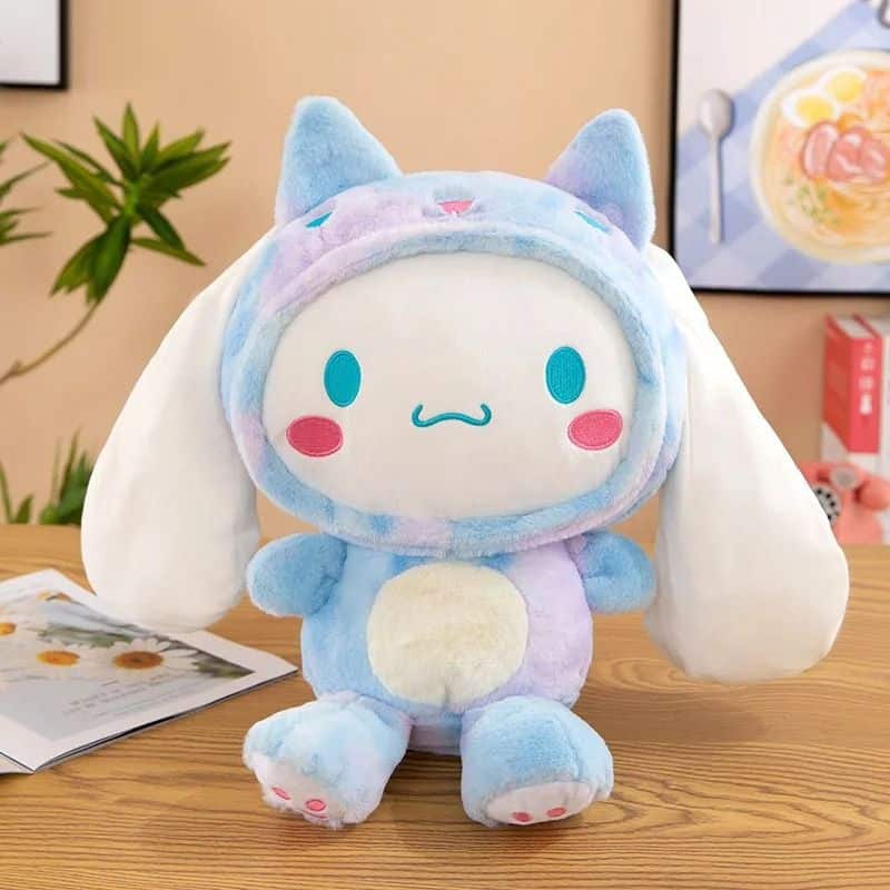 Avec ses oreilles de chat coquettes et son pelage soyeux, cette peluche invite aux plus tendres câlins. Cinnamoroll déguisé révèle un caractère attachant qui séduit petits et grands.