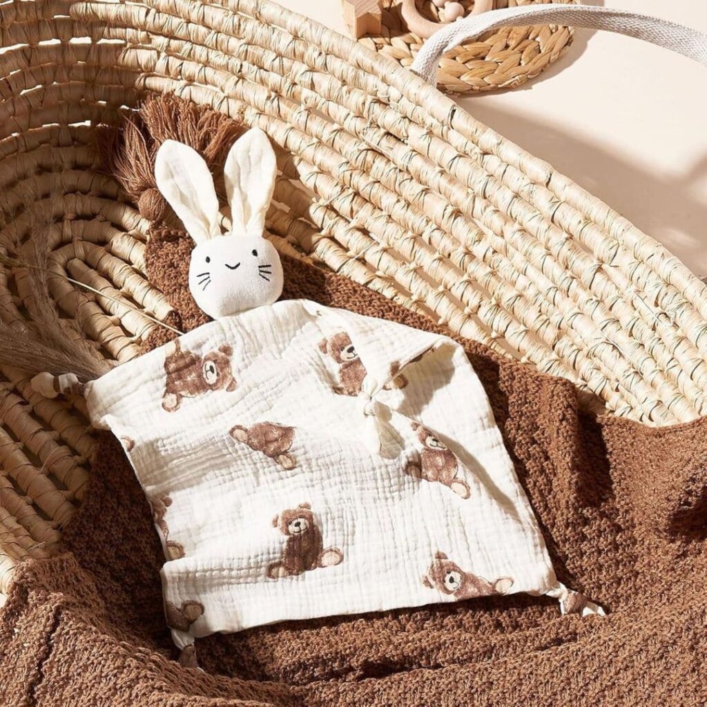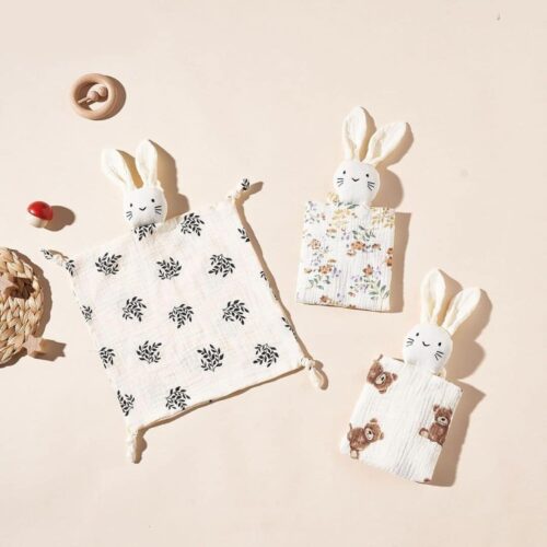 Ce tendre doudou lapin plat deviendra le compagnon préféré de votre petit trésor. Fabriqué en coton hypoallergénique, il accompagne bébé dans ses moments de tendresse et ses douces nuits. Ses motifs colorés et charmants stimulent doucement l’éveil sensoriel.
