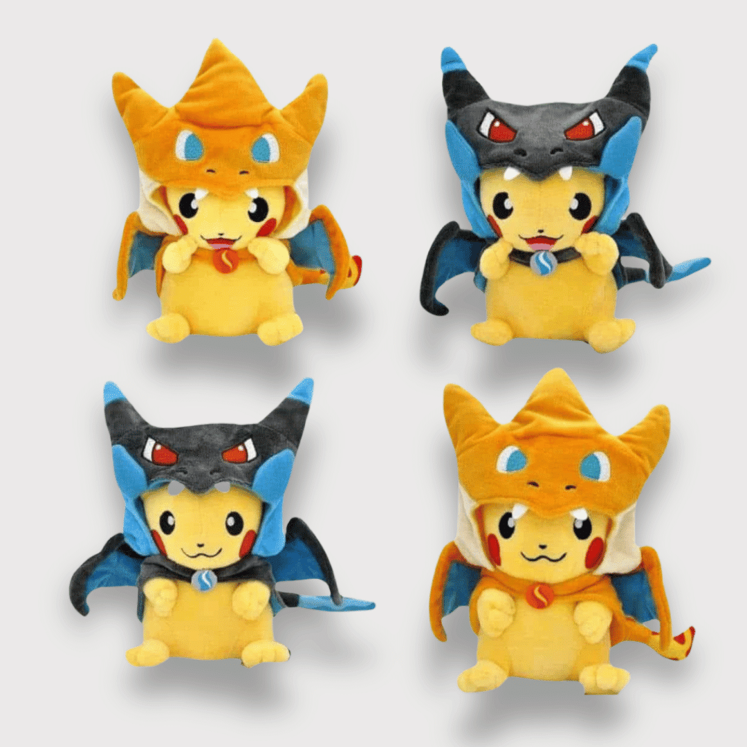 Cette peluche combine deux personnages emblématiques en un seul doudou Pokémon unique. Votre enfant adorera serrer contre lui ce Pikachu espiègle portant le costume de Dracaufeu.