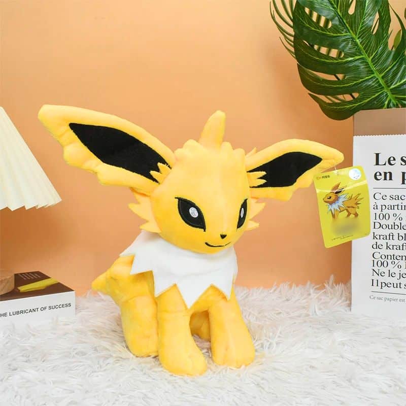 Cette peluche Voltali incarne la douceur avec son toucher velouté qui invite aux câlins. Les enfants adorent serrer contre eux ce Pokémon électrique aux courbes arrondies et au regard bienveillant.