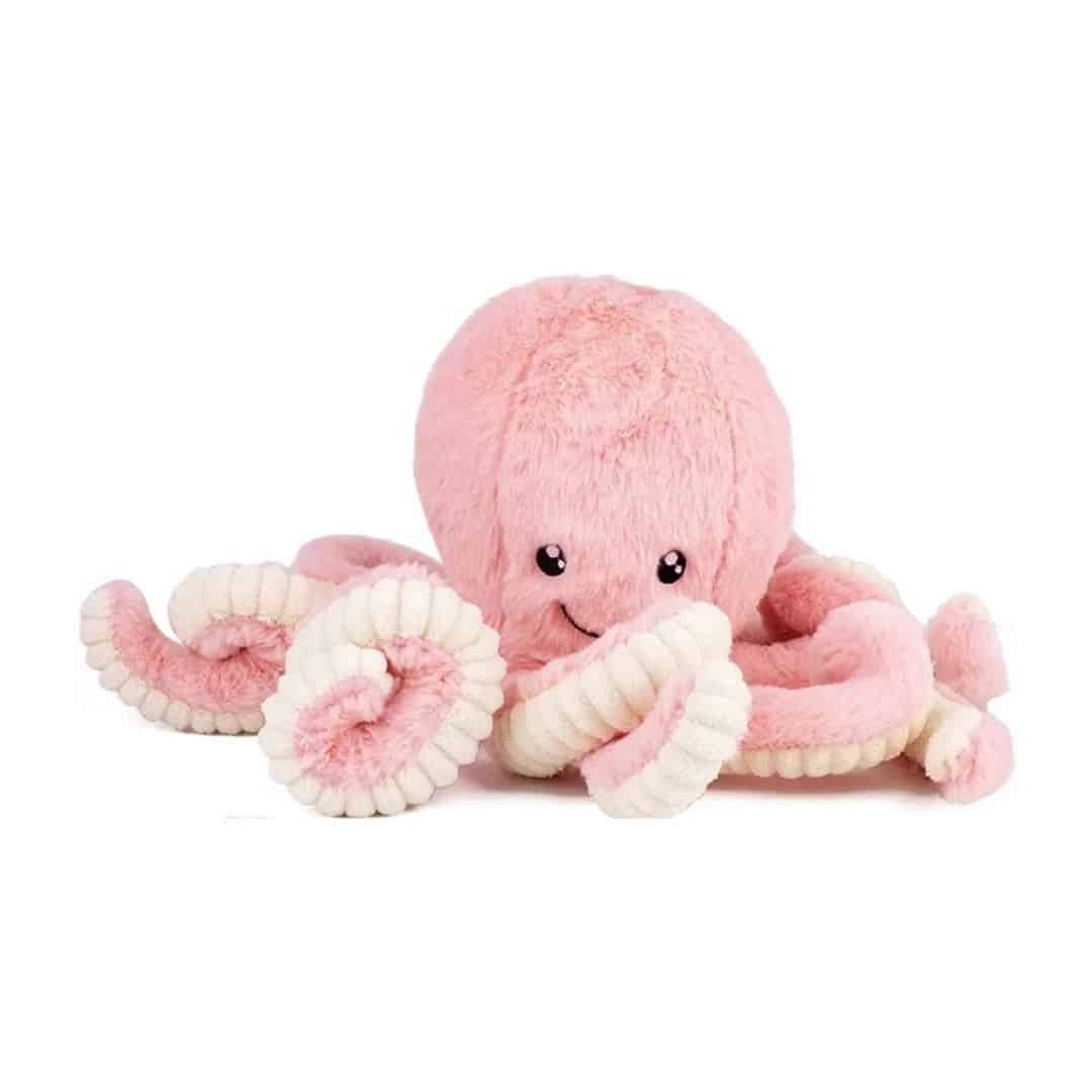 Ce tendre compagnon aux tentacules moelleux accompagnera votre petit dans ses découvertes quotidiennes. Sa texture en coton rose tout doux et ses dimensions de 18 cm en font un ami câlin parfaitement adapté aux petites mains. Un cadeau de naissance raffiné qui deviendra vite inséparable de votre enfant.