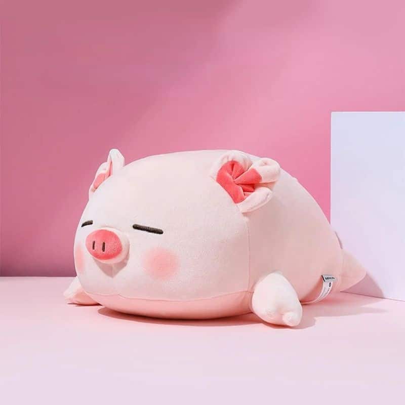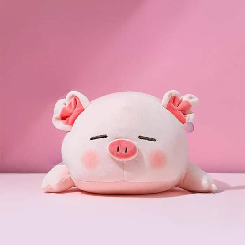 Ce petit cochon endormi apporte une présence rassurante dans la chambre de votre enfant. Son expression paisible et sa posture allongée invitent naturellement au calme et à la détente.