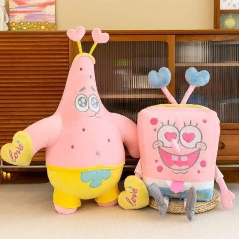 Cette adorable peluche Patrick et Bob l’éponge devient le tendre ami des petits rêveurs. Sa texture moelleuse et ses couleurs joyeuses accompagnent les enfants dans leurs moments de réconfort et d’imagination.