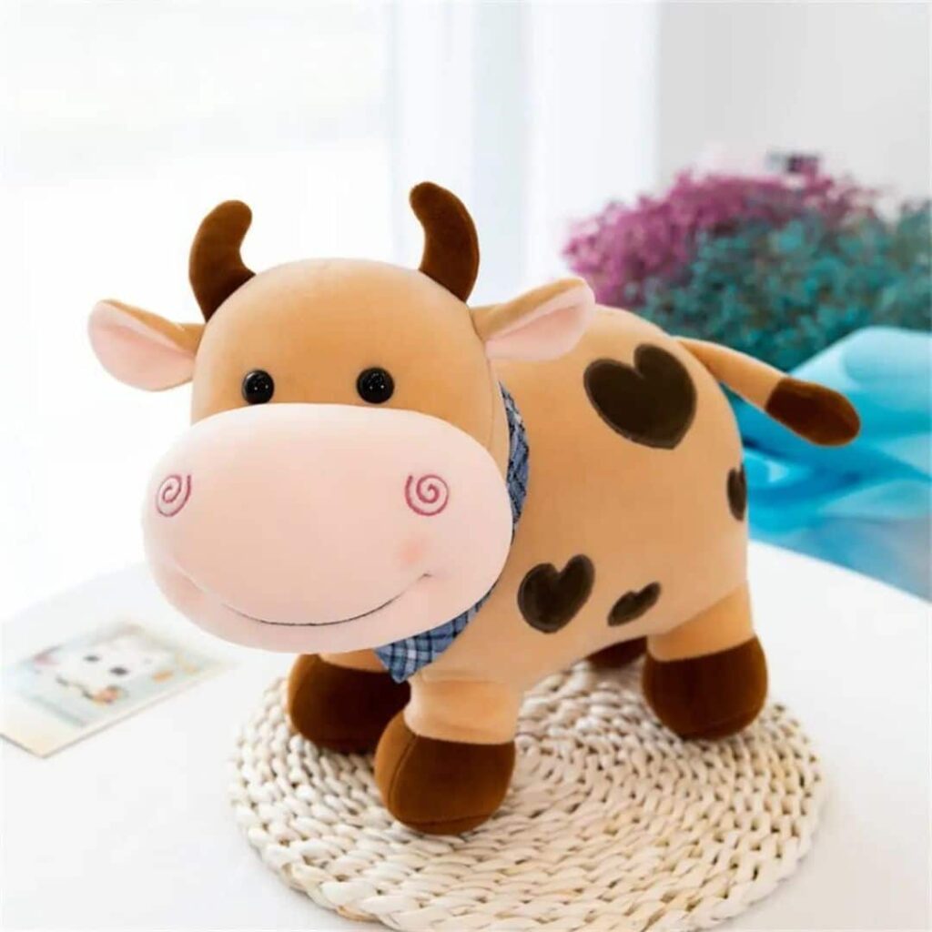Cette peluche vache souriante accompagne tendrement les moments précieux de votre enfant. Sa texture moelleuse invite aux câlins réconfortants tandis que son expression joyeuse illumine la chambre. Un compagnon doux qui grandit avec les petits rêveurs.