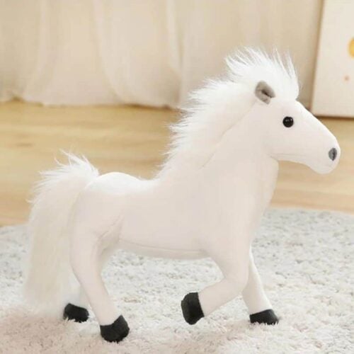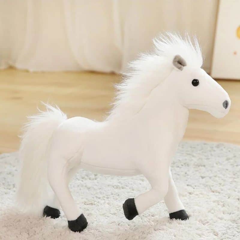 Ce magnifique cheval en peluche de 32 cm devient rapidement le compagnon préféré des petits cavaliers. Disponible en quatre teintes naturelles (noir, marron foncé, marron clair, blanc), il enchante par sa douceur incomparable et ses détails soignés. Un cadeau tendre et raffiné qui éveille l’imagination, réconforte au quotidien et trouve naturellement sa place dans l’univers des enfants.