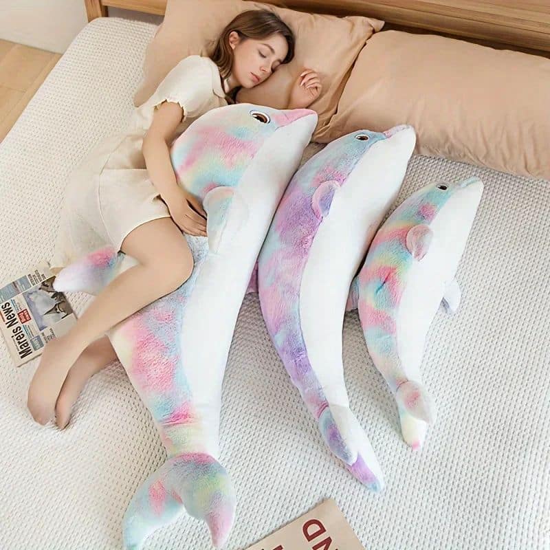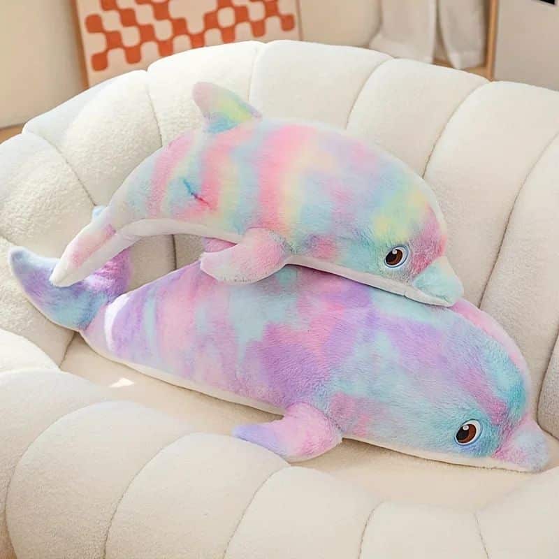 Grâce à ses dimensions variées, cette peluche dauphin multicolore s’adapte à chaque âge et chaque envie. Les plus petits formats accompagnent les sorties tandis que les grandes tailles deviennent des présences rassurantes dans la chambre.