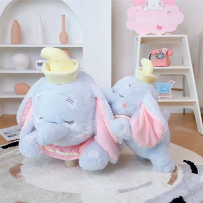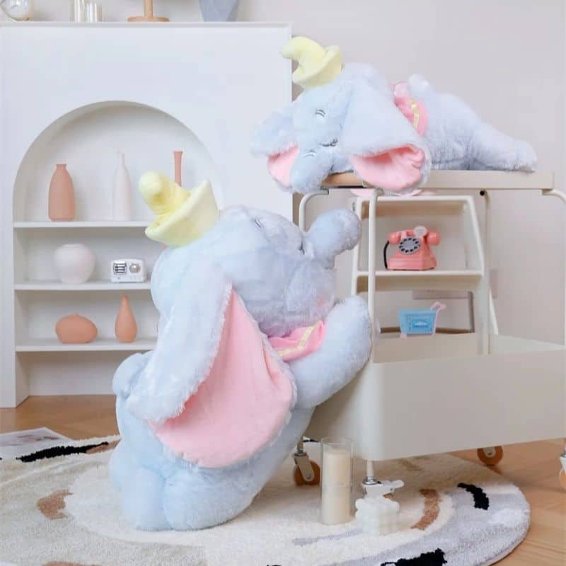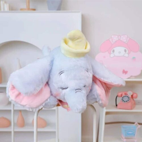 Découvrez cette adorable peluche Dumbo en position allongée, conçue pour accompagner les plus tendres moments de votre enfant. Sa fourrure bleu pastel invite aux caresses, tandis que ses larges oreilles rosées et son petit chapeau jaune évoquent l’univers enchanteur de ce personnage attachant. Proposée en formats 50 cm et 80 cm, elle trouve parfaitement sa place dans une chambre d’enfant.