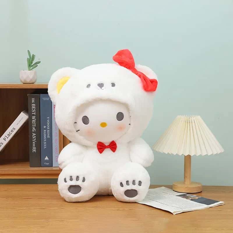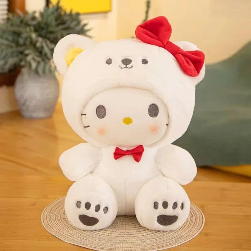 Cette adorable Hello Kitty habillée en ourson de 20 cm devient instantanément la meilleure amie des petits. Son costume d’ours blanc tout doux lui donne un air espiègle et attachant. Sa texture moelleuse invite aux câlins tendres et réconfortants. Un cadeau merveilleux qui illumine le quotidien des enfants et apporte une présence rassurante dans leur univers.