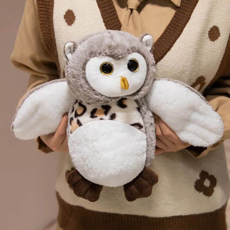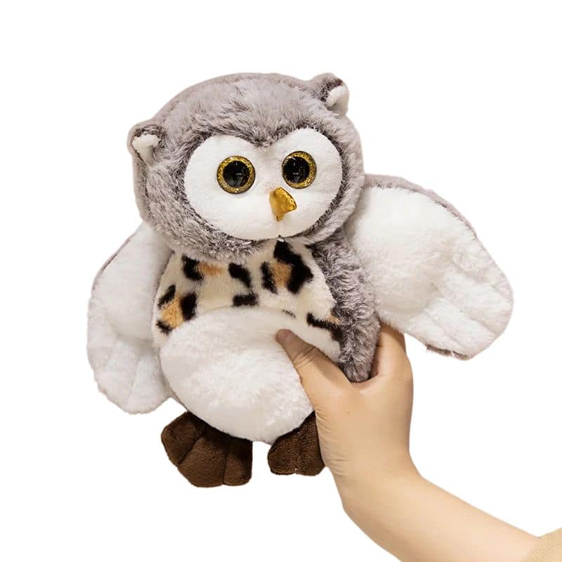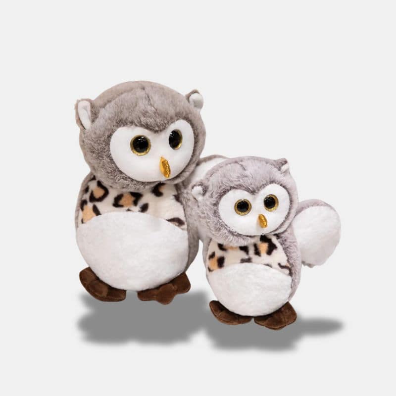 Cette ravissante peluche hibou grise séduit par son plumage soyeux et son ventre blanc parsemé de délicates mouchetures. Ses petites pattes brunes complètent harmonieusement son apparence attendrissante. Compagnon idéal pour décorer une chambre d’enfant ou accompagner les moments de repos, ce hibou diffuse une présence réconfortante où qu’il se pose.