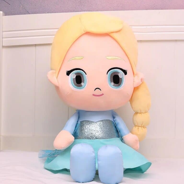 Cette charmante peluche inspirée du personnage d’Elsa La Reine des Neiges apporte réconfort et douceur aux petits rêveurs. Ses dimensions de 30 cm permettent aux enfants de la serrer facilement contre eux.