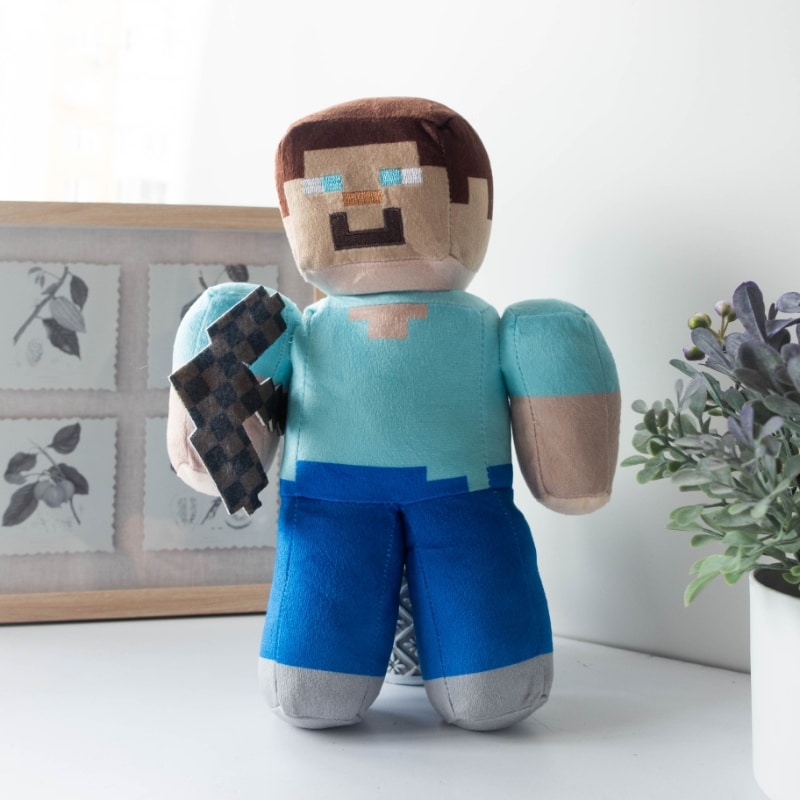 Steve devient rapidement un confident précieux qui rassure lors du coucher et embellit l’espace de jeu avec son charme pixelisé unique.