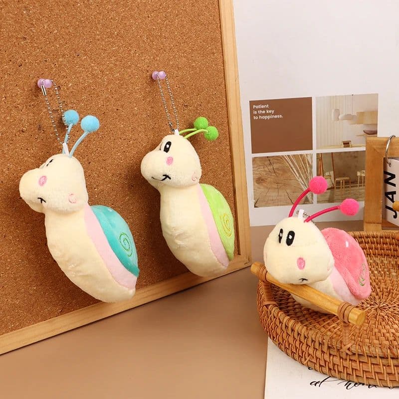 Cette adorable peluche porte-clés escargot accompagne les petits dans leurs découvertes quotidiennes. Sa coquille colorée cache une douceur infinie qui rassure et console.