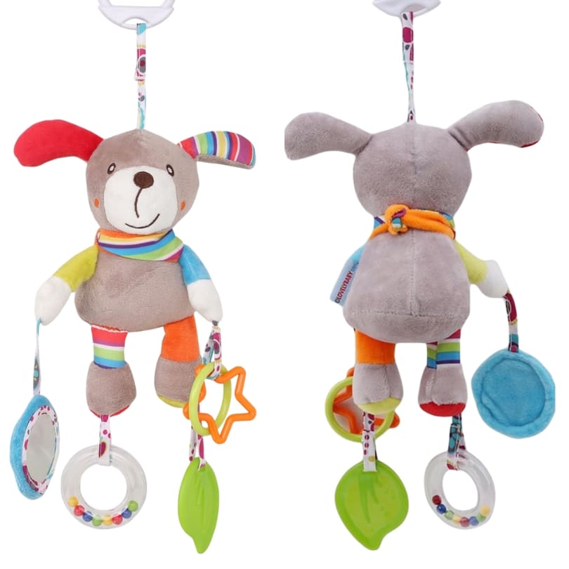 Avec ses dimensions généreuses de 43 cm, ce petit chien devient le gardien des rêves et le compagnon des jeux d’éveil.