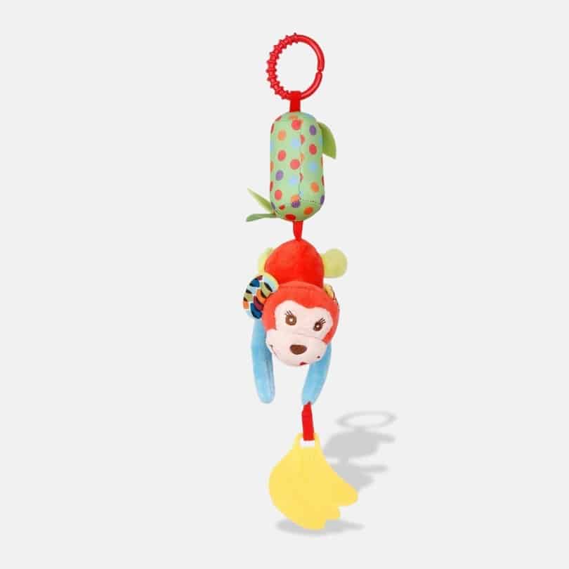 Grâce à son système d’accroche ingénieux, ce singe musical vous suit partout facilement. Du lit au parc en passant par les trajets en voiture, il reste toujours à portée de main.
