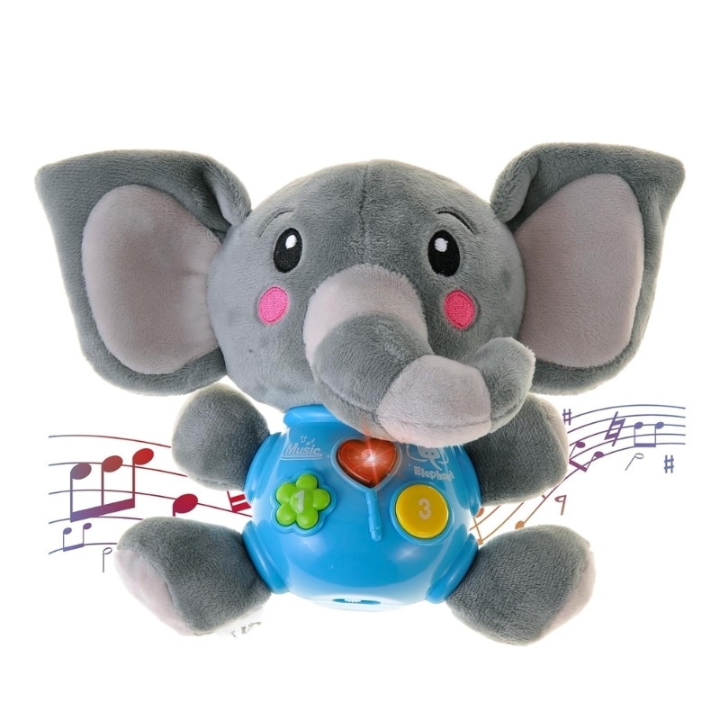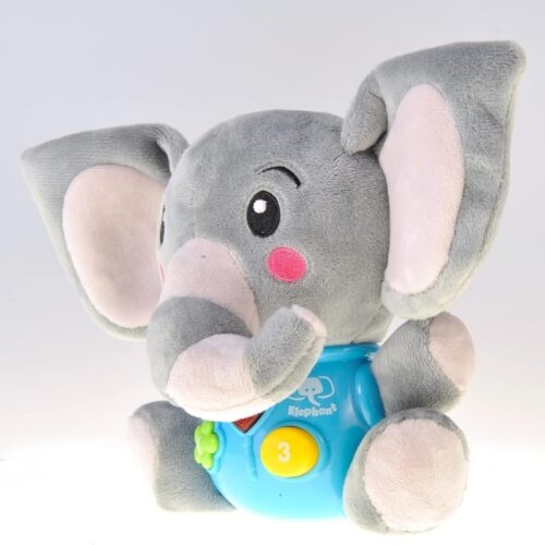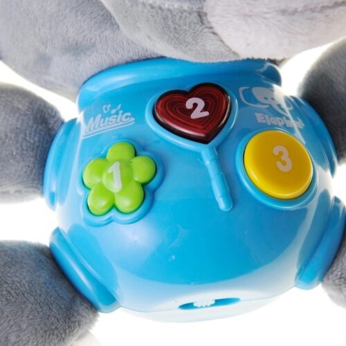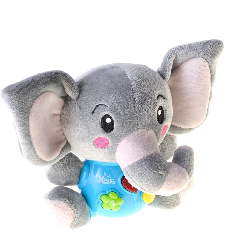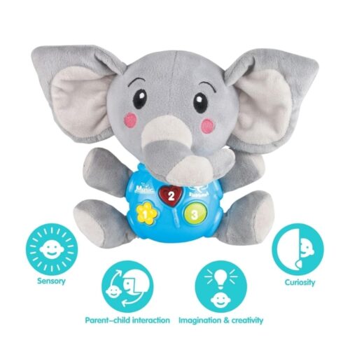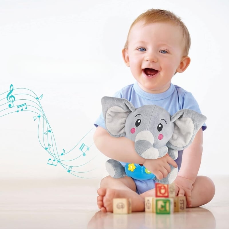 Votre enfant découvrira avec émerveillement cet éléphant qui chante doucement pour l’apaiser. Sa texture moelleuse invite aux câlins tandis que sa taille parfaite permet aux petites mains de le serrer fort.