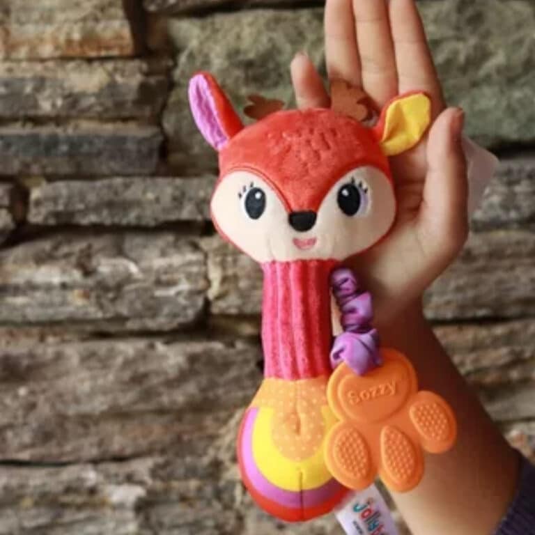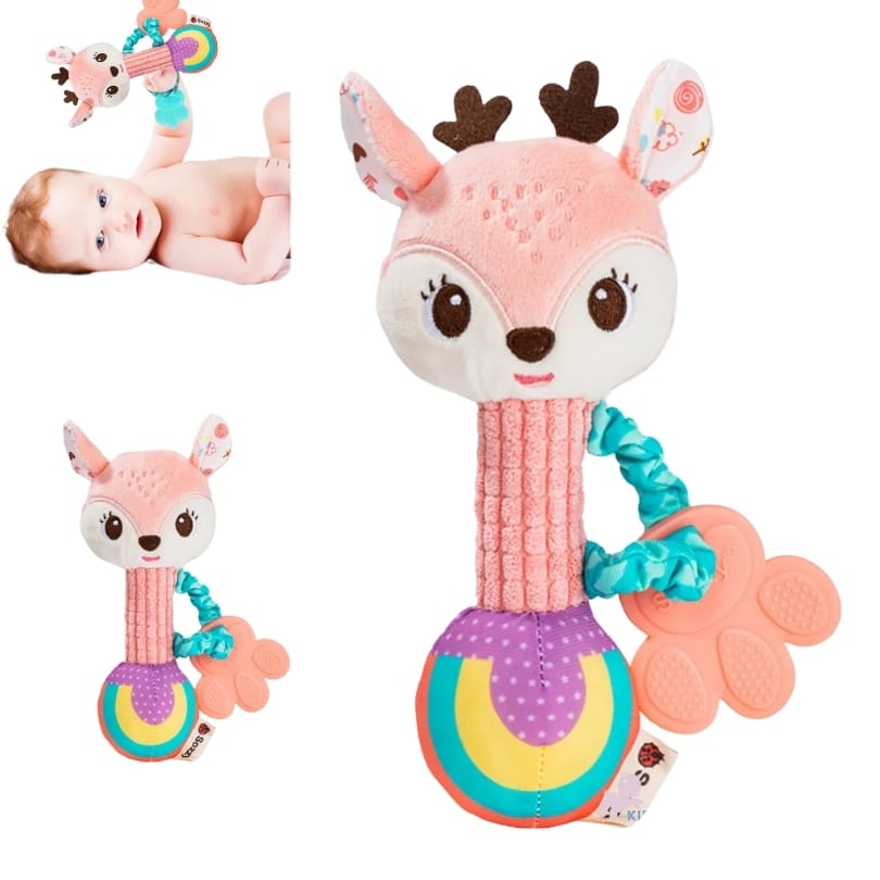 Ce petit cerf enchanteur devient rapidement le confident préféré de bébé grâce à sa mélodie apaisante qui accompagne les moments de repos. Sa texture moelleuse invite aux câlins tandis que le hochet intégré stimule délicatement l’ouïe.