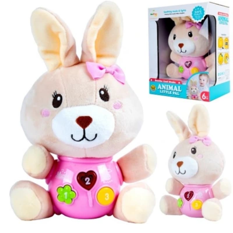 Format idéal de 17,7 cm, ce lapin musical se transporte facilement dans le sac à langer ou la poussette. Il reste toujours à portée de main pour consoler et rassurer.