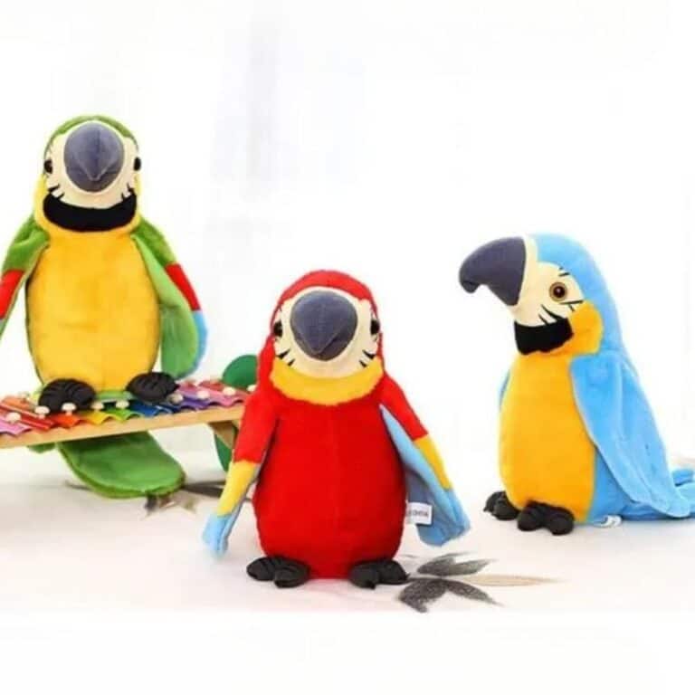 Les plumes soyeuses de ce perroquet de 22 cm invitent aux câlins tendres. Disponible en trois teintes vives – rouge, vert et bleu – ce compagnon en peluche apporte une touche exotique dans l’univers de bébé.