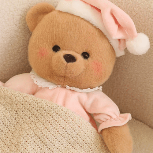 Ce tendre compagnon nocturne veille sur les rêves des enfants avec sa présence rassurante. Son pyjama coloré et son expression bienveillante créent une atmosphère sereine propice au sommeil.