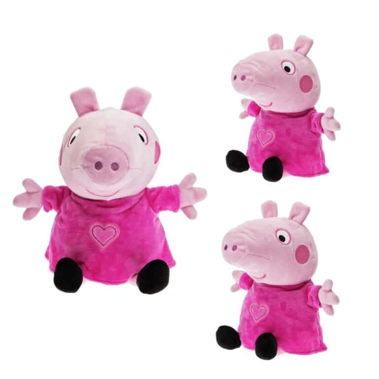 Cette adorable peluche Peppa en pyjama rose apporte tendresse et réconfort aux petits rêveurs. D’une hauteur de 30 cm, elle arbore une charmante chemise de nuit ornée d’un cœur brodé. Parfaite compagne pour les histoires du soir et les aventures imaginaires.