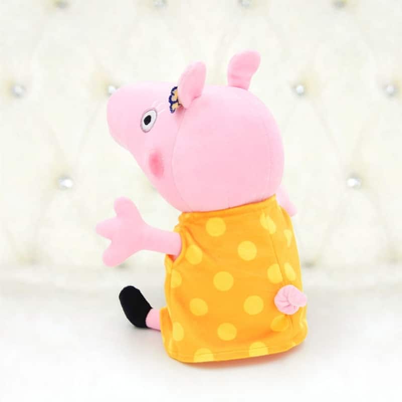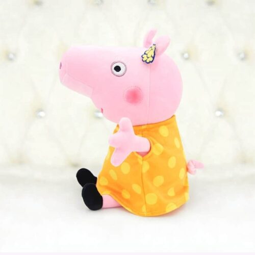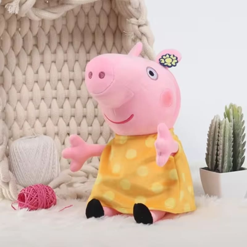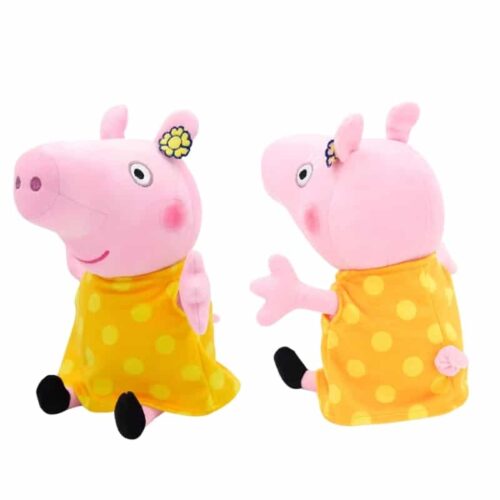 Cette adorable Mamie Pig en peluche ravira tous les petits fans de la célèbre famille cochon. Vêtue de sa belle robe jaune parsemée de pois avec une fleur délicate ornant ses cheveux, elle mesure 30 cm de hauteur. Sa texture moelleuse invite aux câlins réconfortants et accompagne merveilleusement les aventures imaginaires des enfants.