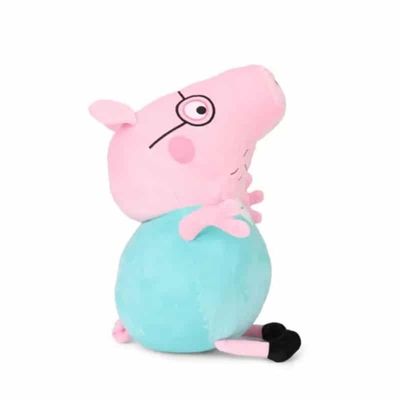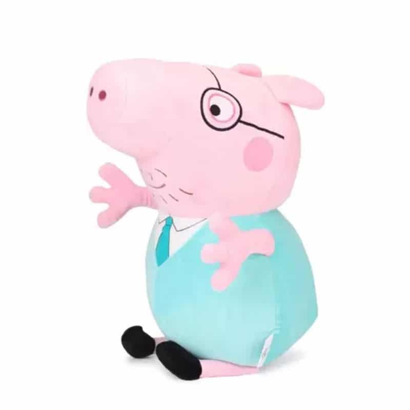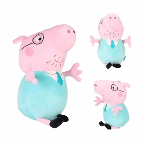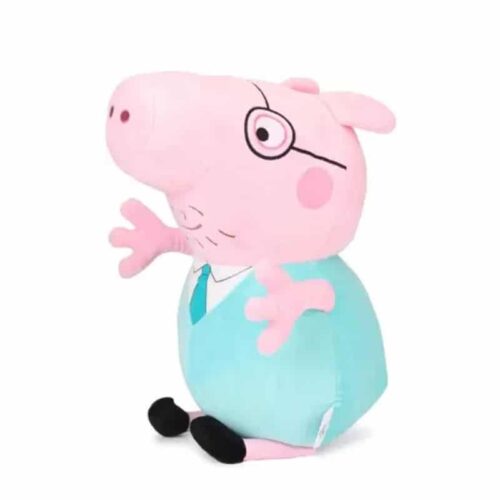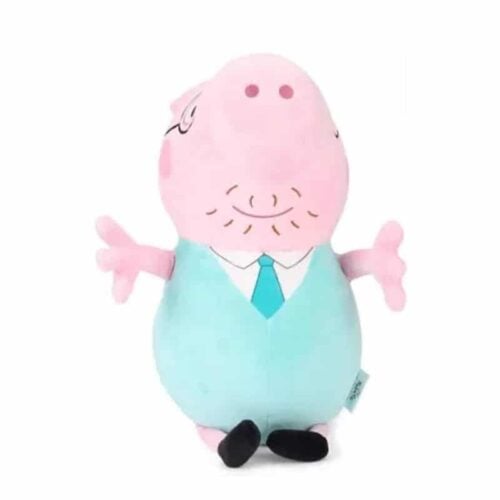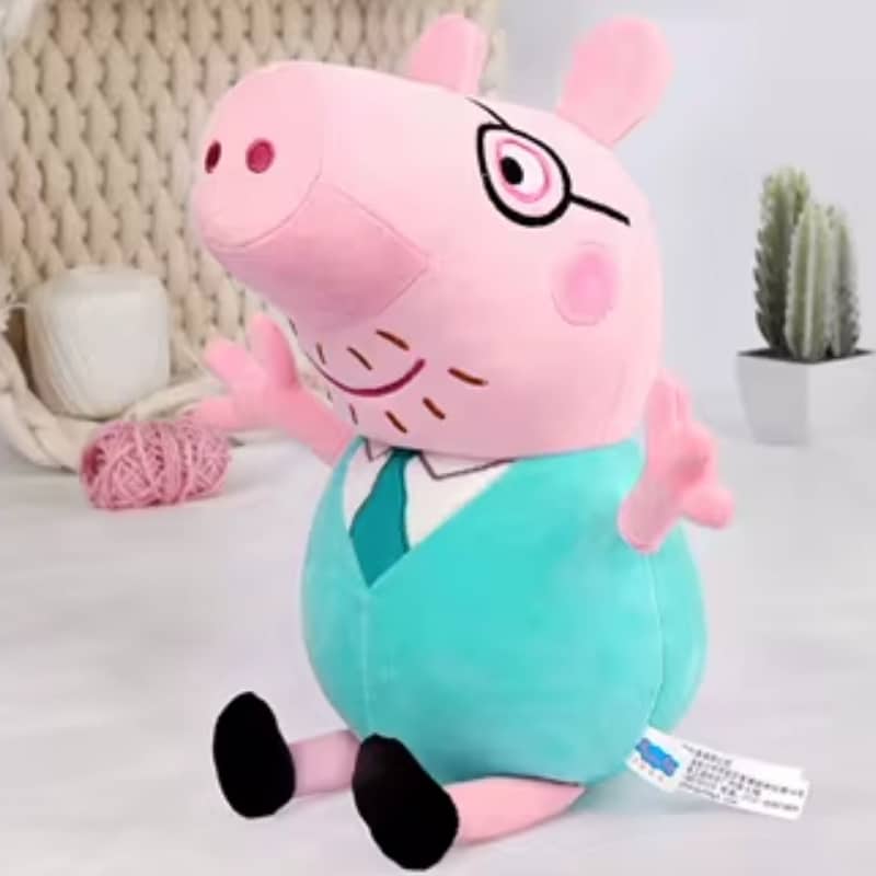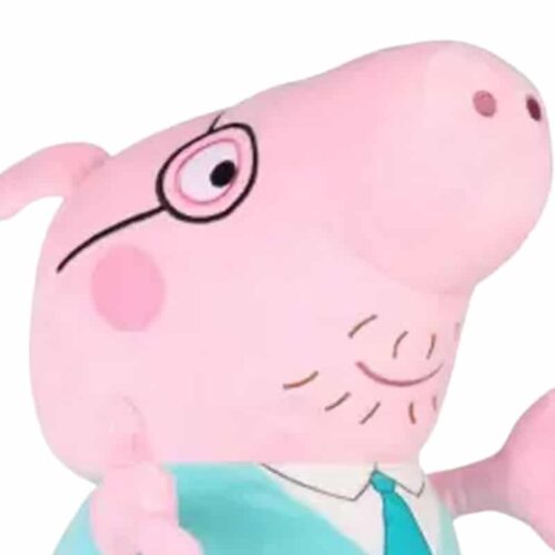 Cette adorable peluche de Papa Pig mesure environ 30 cm et ravira tous les enfants fans de la célèbre famille cochon. Vêtu de son élégant costume bleu-vert avec ses lunettes rondes caractéristiques et sa barbe finement brodée, ce compagnon tout doux invite aux moments tendres et réconfortants.