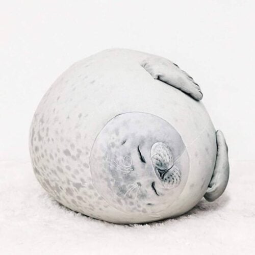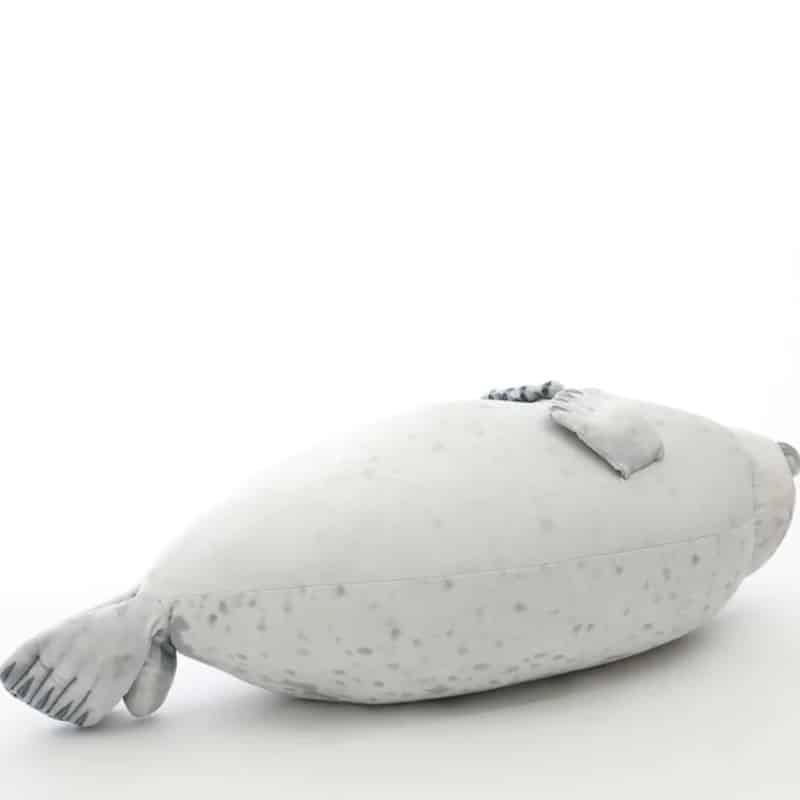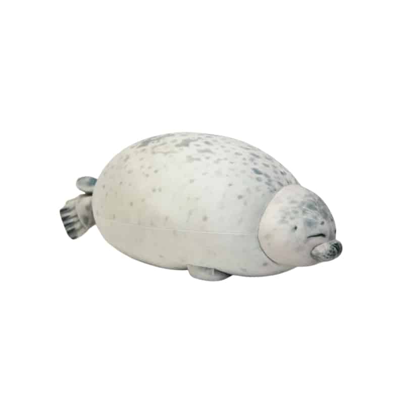 Avec sa texture soyeuse et son regard attendrissant, ce phoque allongé devient rapidement le confident préféré des enfants. Sa posture couchée invite naturellement aux câlins et aux moments de tendresse partagés.