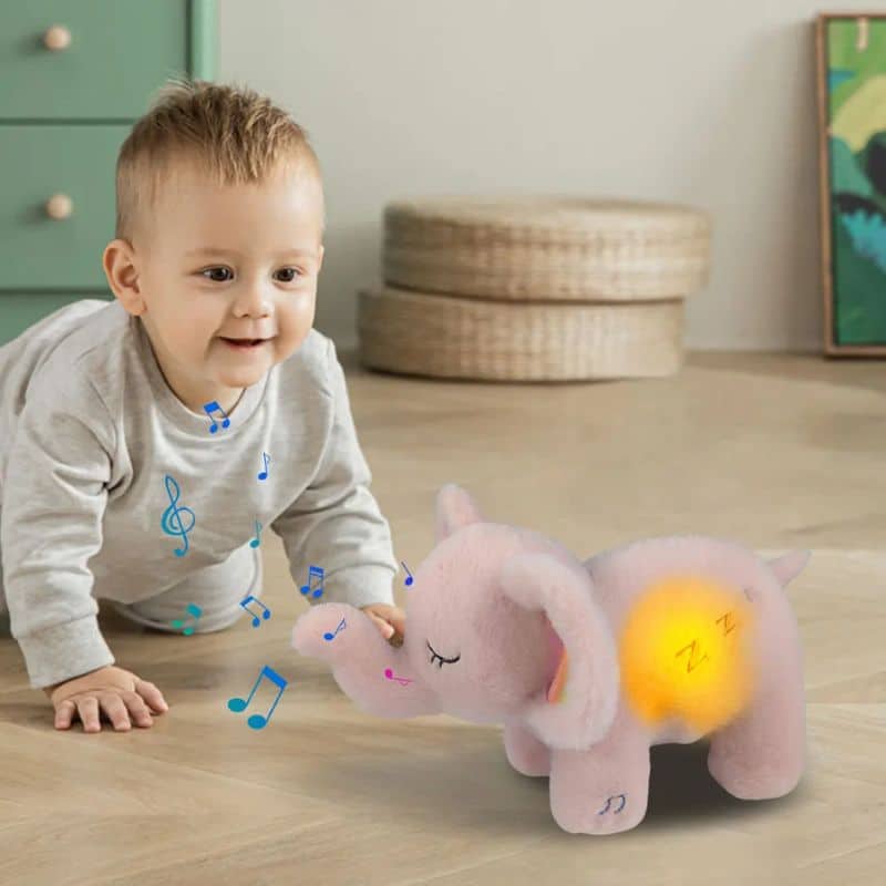 Cet adorable éléphant en peluche accompagne les tout-petits avec sa respiration rythmée et rassurante. Mesurant 30 cm, il existe en coloris gris ou rose pour devenir le gardien des nuits paisibles et des moments de réconfort.
