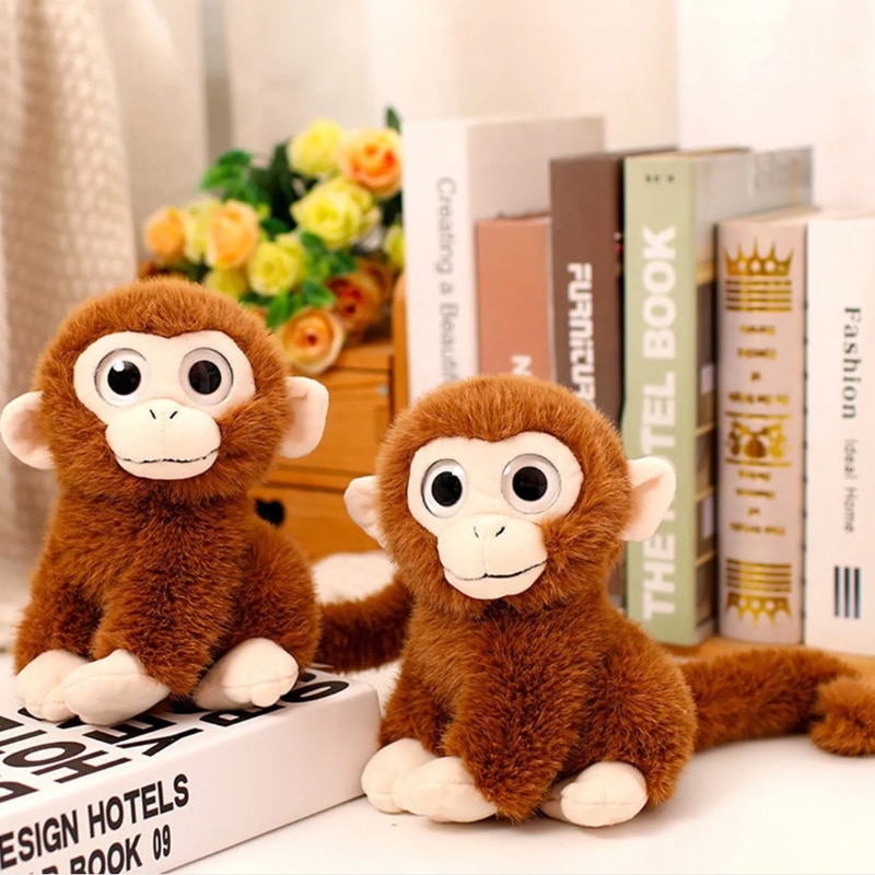 Ce petit singe en peluche éveille immédiatement l’affection avec son regard pétillant et son toucher irrésistiblement moelleux. Son pelage marron accompagné de nuances beiges délicates en fait un compagnon attachant. Proposé en formats 18 cm et 23 cm, il convient parfaitement aux moments tendres, à l’embellissement d’une chambre d’enfant ou comme présent réconfortant.