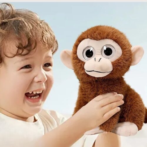 Conçu avec des matières délicates et sécurisées, ce singe aux grands yeux offre une texture agréable qui apaise et rassure. Sa taille adaptée permet aux petites mains de le serrer facilement contre soi.
