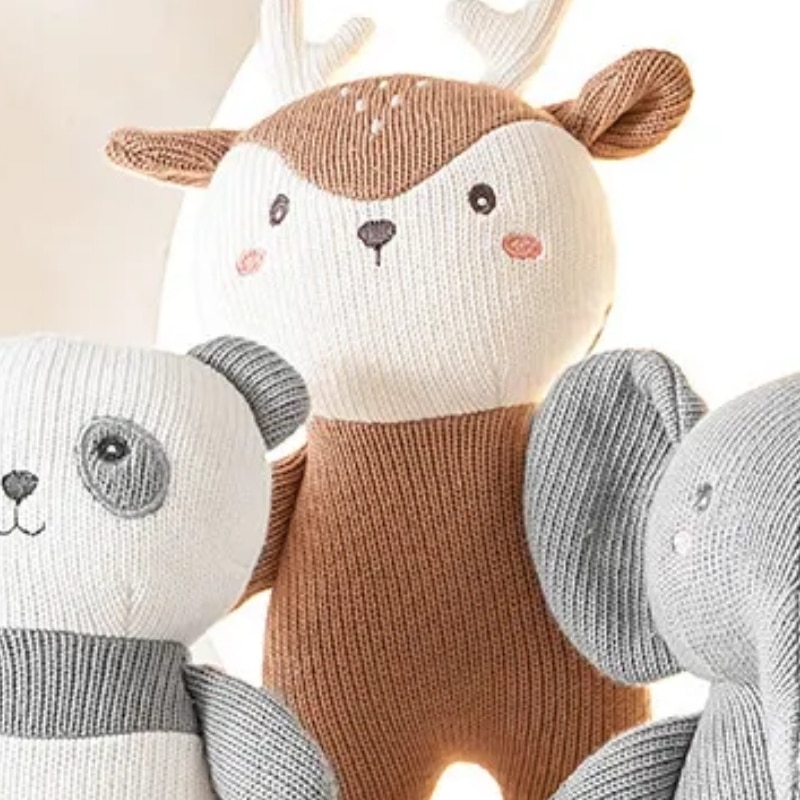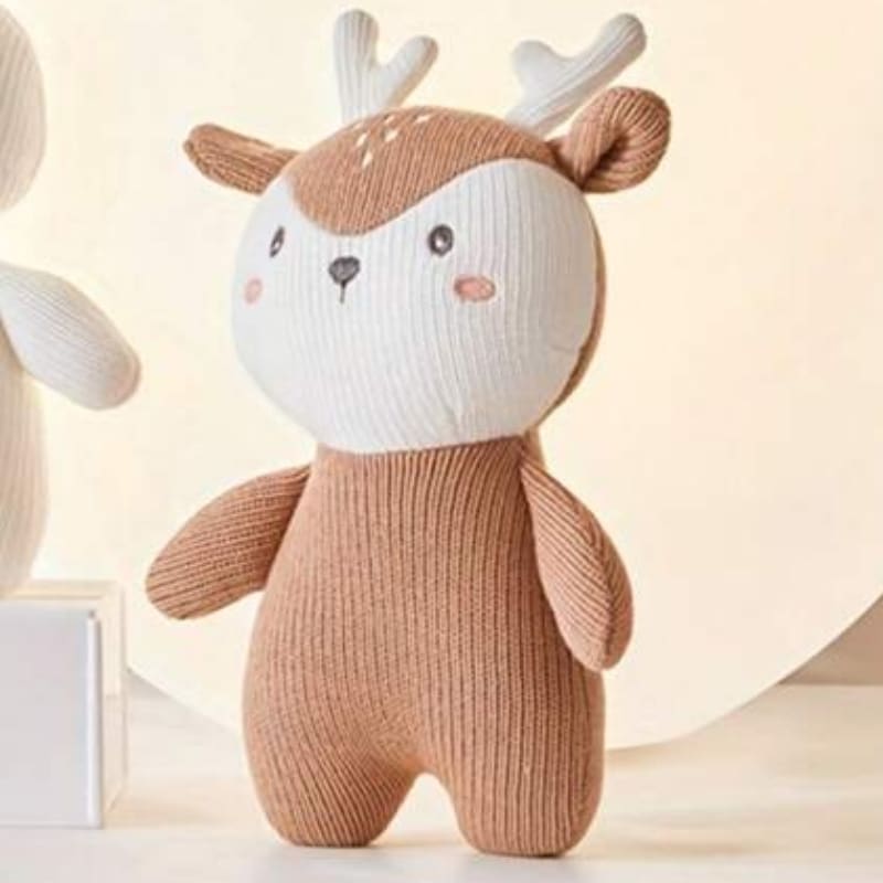 Cette adorable peluche cerf tricotée devient rapidement le confident préféré des petits. Sa texture moelleuse invite aux câlins et apaise les chagrins.