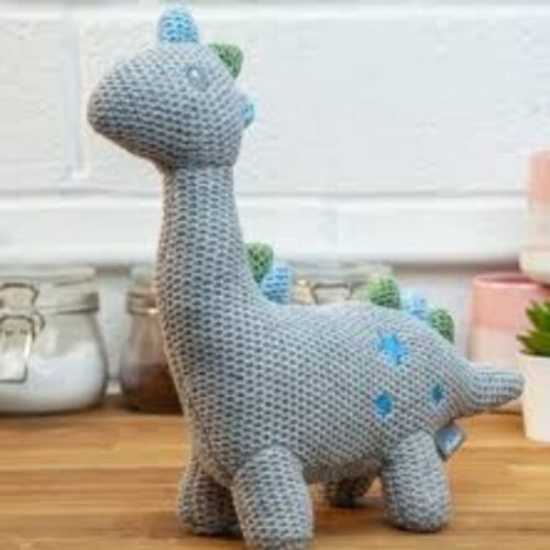 Cette adorable peluche dinosaure tricotée accompagne les enfants dans leurs aventures imaginaires et leurs moments de repos. Sa taille de 25 cm permet aux petites mains de la saisir facilement.
