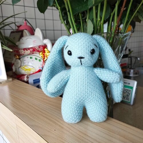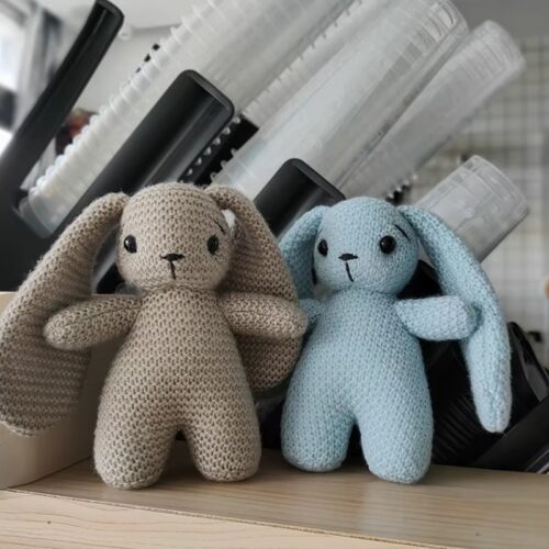 Découvrez ce charmant lapin en tricot qui promet des instants câlins inoubliables aux enfants. Avec ses 15 cm de hauteur, cette peluche se glisse partout pour suivre les aventures quotidiennes. Proposée en teintes bleue ou marron, elle allie douceur et élégance artisanale pour créer un compagnon réconfortant qui grandira avec votre enfant.