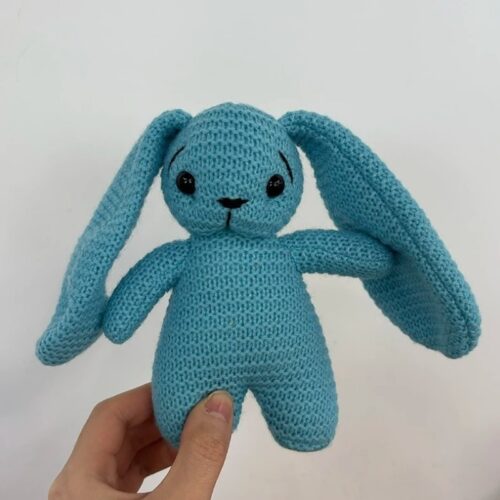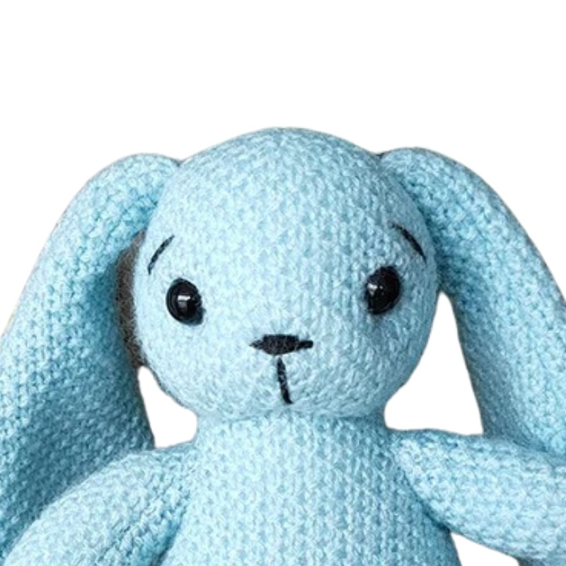 Ce petit lapin tricoté devient rapidement le confident préféré des enfants grâce à sa texture moelleuse qui invite aux câlins. Sa taille parfaite permet aux petites mains de le saisir facilement.