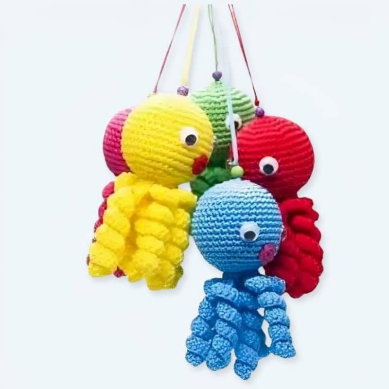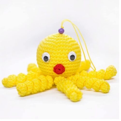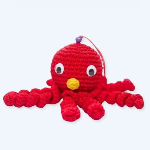 Cette petite créature marine tricotée invite à l’aventure et au réconfort. Ses tentacules souples et sa texture moelleuse apaisent les chagrins et accompagnent les moments de tendresse.