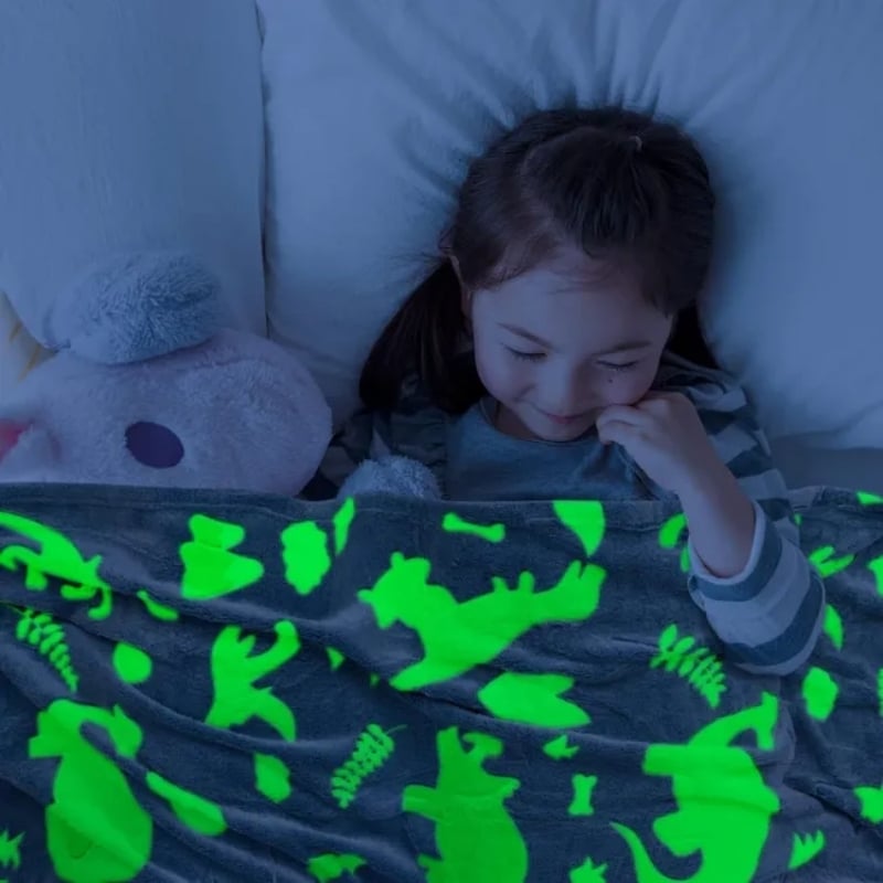 Cette adorable couverture phosphorescente transforme l’heure du coucher en moment féerique. Ses dinosaures captent la lumière du jour et diffusent une lueur apaisante dans le noir, créant un cocon rassurant pour votre petit trésor. Déclinée en formats 70×100 cm, 100×150 cm, 130×150 cm et 150×200 cm, elle accompagne chaque étape de croissance. Sa teinte grise délicate se marie avec douceur à l’univers de la chambre.