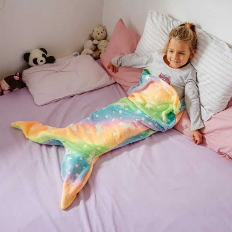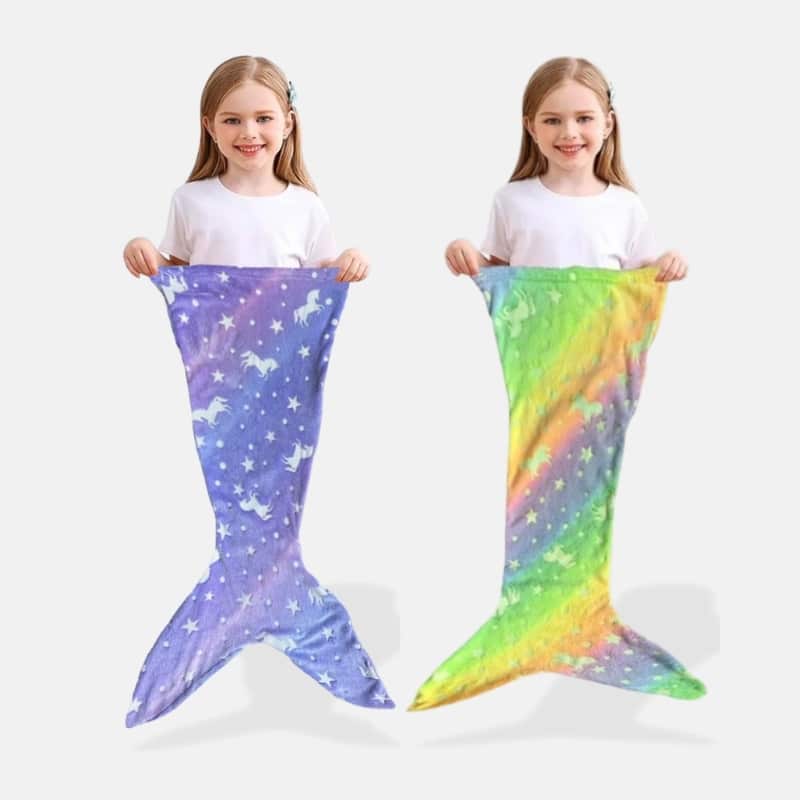 Cette adorable couverture en forme de queue de sirène transforme l’heure du coucher en aventure sous-marine enchantée. Confectionnée dans un tissu douillet, elle brille délicatement dans le noir pour rassurer et émerveiller votre petit trésor. Ses dimensions généreuses de 120×58 cm enveloppent tendrement l’enfant tout en lui permettant de bouger librement. Proposée en teintes Arc-en-ciel ou Violet, elle accompagne merveilleusement les câlins du soir et les moments de lecture.