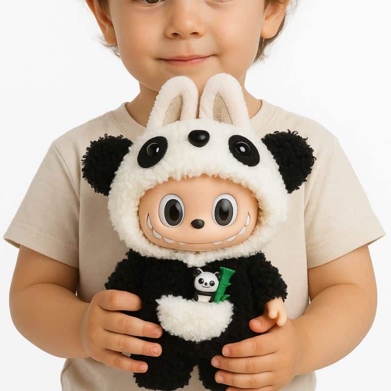 Transformez votre Labubu en un compagnon encore plus câlin avec ce costume de panda pour peluche plein de charme. Parfaitement ajusté aux figurines et doudous de 17 cm, cet habit combine douceur et fantaisie pour émerveiller petits et grands. Son enfilage simple permet aux enfants de personnaliser leur ami en tissu en quelques gestes. Idéal pour enrichir les jeux imaginatifs ou comme présent attendrissant, ce déguisement apporte une dimension ludique à chaque moment partagé.